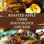 Roasted Apple Cider Spatchcock Chicken is a juicy, flavorful dish featuring a whole chicken marinated in apple cider, herbs, and spices, then roasted to golden perfection. The spatchcock method ensures even cooking and crispy skin, while the cider adds a subtle sweetness that complements the savory flavors beautifully.