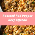 Roasted Red Pepper Beef Alfredo is a rich and comforting pasta dish featuring tender strips of seasoned beef tossed in a creamy roasted red pepper Alfredo sauce. The smoky sweetness of red peppers blends with garlic, Parmesan, and cream for a velvety, flavor-packed meal perfect for weeknights or special occasions.
