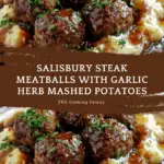 Salisbury Steak Meatballs with Garlic Herb Mashed Potatoes is the kind of soul-warming comfort food that never goes out of style. With juicy, seasoned meatballs in a rich brown gravy paired with ultra-creamy mashed potatoes, every bite is pure satisfaction. It’s a classic, made easier and even more delicious—perfect for gatherings, weeknight dinners, or whenever you need a hearty, homemade meal.