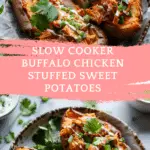 PrintSlow Cooker Buffalo Chicken Stuffed Sweet Potatoes