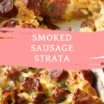 Smoked Sausage Strata is a hearty breakfast casserole made with layers of crusty bread, smoky sausage, eggs, and cheese. Baked to golden perfection, it’s perfect for brunch, holidays, or make-ahead mornings.