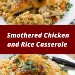 Smothered Chicken and Rice Casserole is a creamy, comforting baked dish featuring tender chicken smothered in a rich sauce and cooked over perfectly seasoned rice. It’s hearty, flavorful, and easy to make—perfect for cozy family dinners or weeknight meals.