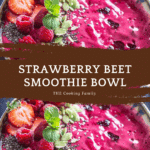 A vibrant, creamy smoothie bowl made with beets, strawberries, and banana. Packed with antioxidants and nutrients, this bowl is topped with fruits, seeds, or granola for a wholesome and colorful breakfast.
