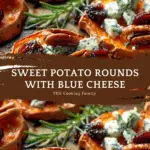 Sweet Potato Rounds with Blue Cheese are a simple yet elegant appetizer or side dish featuring roasted sweet potato slices topped with tangy blue cheese and optional garnishes for extra flavor and presentation.