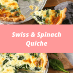 Swiss & Spinach Quiche is a savory baked dish made with tender spinach, nutty Swiss cheese, and a rich egg custard inside a buttery pie crust. Perfect for brunch, lunch, or light dinner.