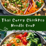 Thai Curry Chickpea Noodle Soup is a creamy, comforting, and flavorful dish made with coconut milk, curry paste, chickpeas, noodles, and vegetables. It’s a quick, nourishing meal with bold Thai-inspired flavors.