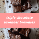Rich and fudgy Triple Chocolate Lavender Brownies infused with delicate culinary lavender and loaded with dark, milk, and white chocolate for an indulgent floral twist.