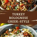 Turkey Bolognese Greek-Style is a Mediterranean-inspired version of the classic Italian sauce. Made with lean ground turkey, tomatoes, oregano, cinnamon, and finished with feta and olives, this hearty yet healthy meal brings bright, savory Greek flavors to your table.