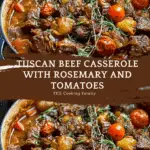 Tuscan Beef Casserole with Rosemary and Tomatoes is a rustic, slow-cooked Italian dish featuring tender beef braised with garlic, onions, tomatoes, and rosemary. Perfect for cozy dinners, this deeply flavorful one-pot meal is hearty and comforting.