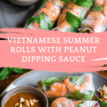 Vietnamese Summer Rolls with Peanut Dipping Sauce are fresh, vibrant rolls filled with crisp vegetables, herbs, and shrimp, served with a creamy, savory peanut sauce.